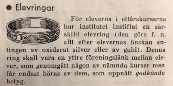 "Närmast kroppen på mitt ringfinger bär jag Påhlmansringen som alla som studerande på Påhlmans hade möjlighet att köpa efter att man var klar med studierna. Utanpå denna ring sitter min vigselring men Påhlmansringen bär jag ständigt närmast mitt hjärta."